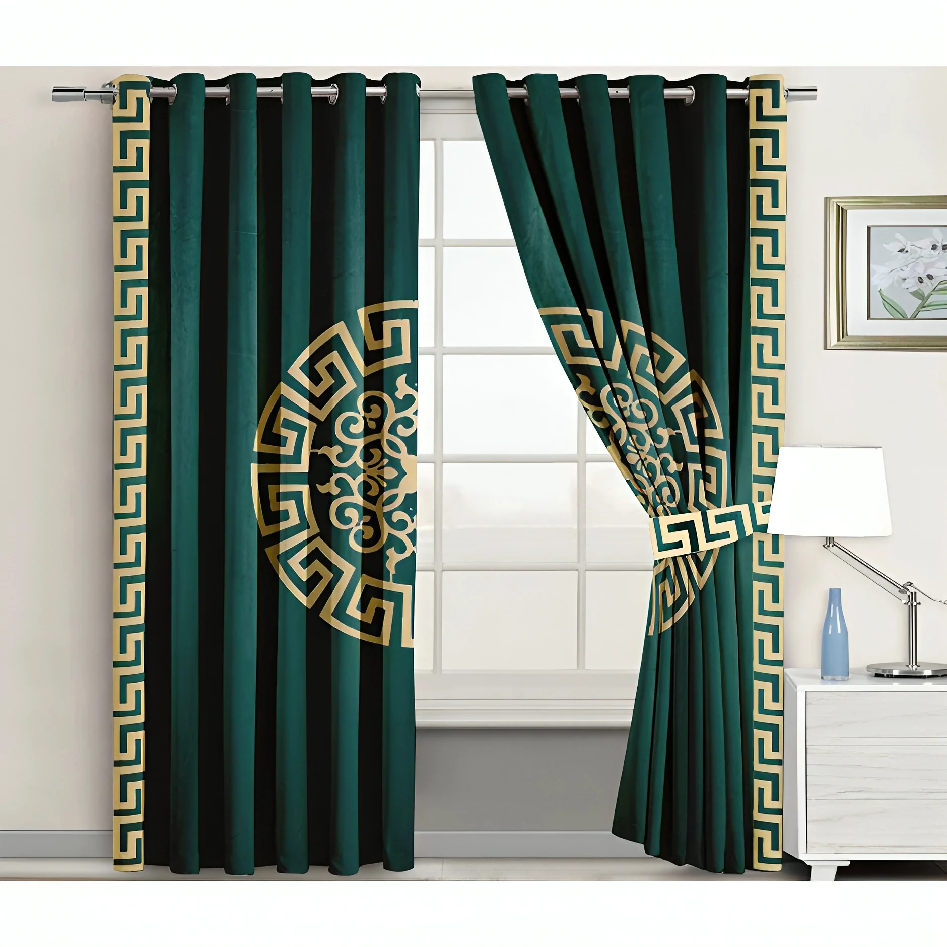 Luxury Floral Velvet Curtain – Golden with Black Floral Design