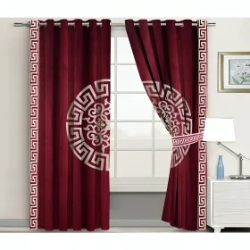 Luxury Splendid Velvet Curtain – Dark Red And White