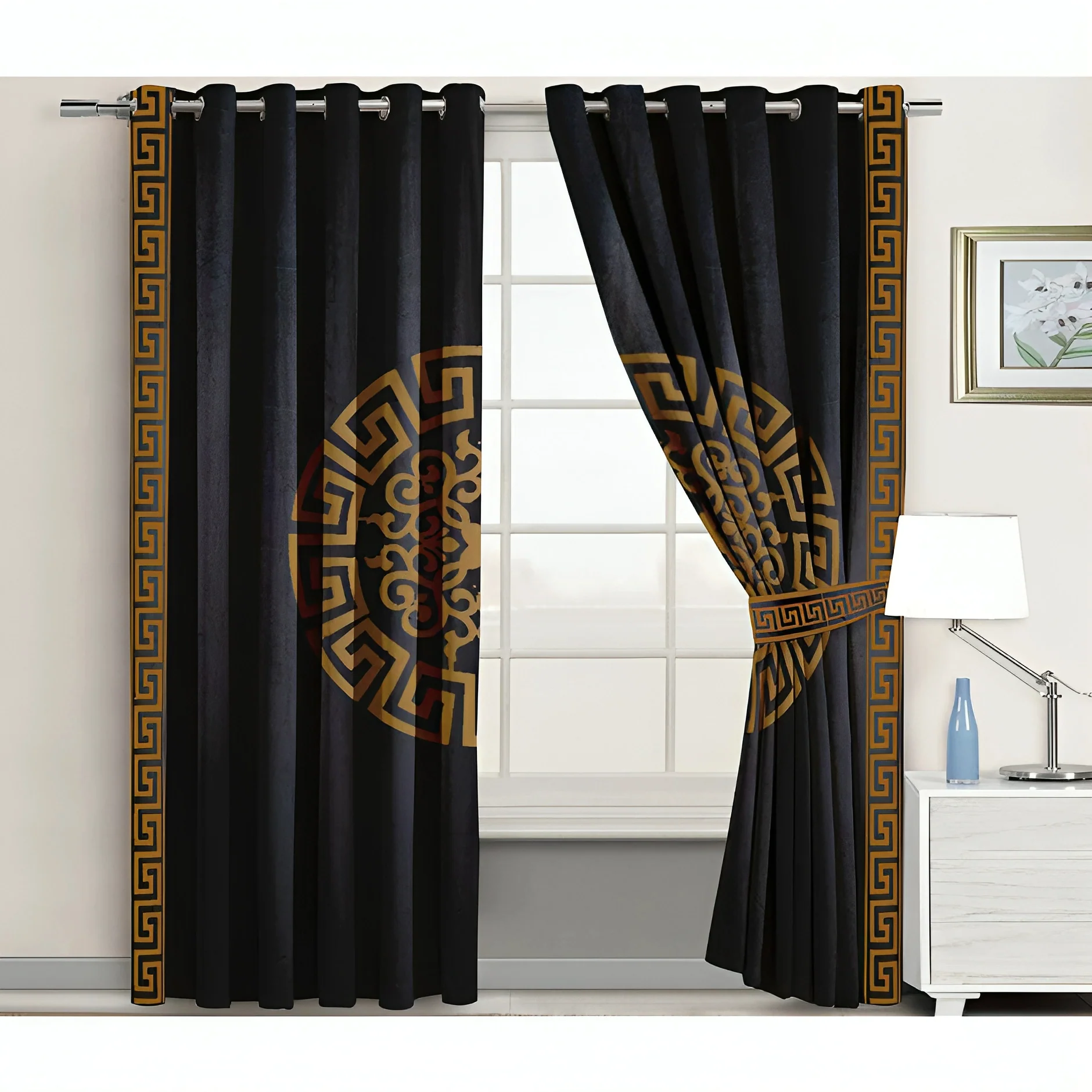 Luxury Splendid Velvet Curtain – Black And Golden